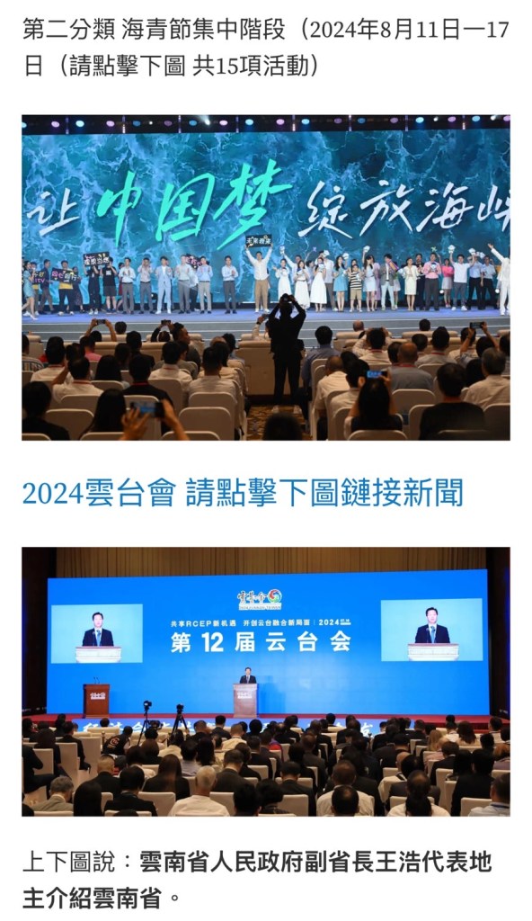 為盤點、梳理過去一年來地方涉台活動精彩亮點,展示各地涉台宣傳報道成果,經國台辦批准,中國台灣網「2024年度地方涉台優秀新聞作品」推選活動於1月8日正式上線啟動。本次活動設定8大獎項,包括優秀頭圖10個、優秀稿件10篇、優秀影片10個、優秀專題10個、優秀網站10個、優秀合作採編10個、優秀投稿單位10家以及精品入圍獎20個。活動期間,也將發佈光「融」榜,公佈「融觀」熱點活動top5及話題詞排行top5。兩岸網友可透過中國台灣網官方網站,以及新浪微博、今日頭條、微信公眾號、Facebook等社群媒體平台進行投票。