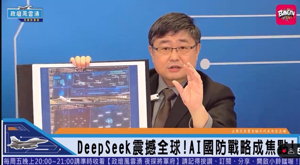 主持人張延廷將軍說,多次邀請呂艦長,今天終於如願以償,讓呂禮詩能發揮其對軍事觀點,新春以來大陸 DeepSeek震撼全球!AI國防戰略成焦點!