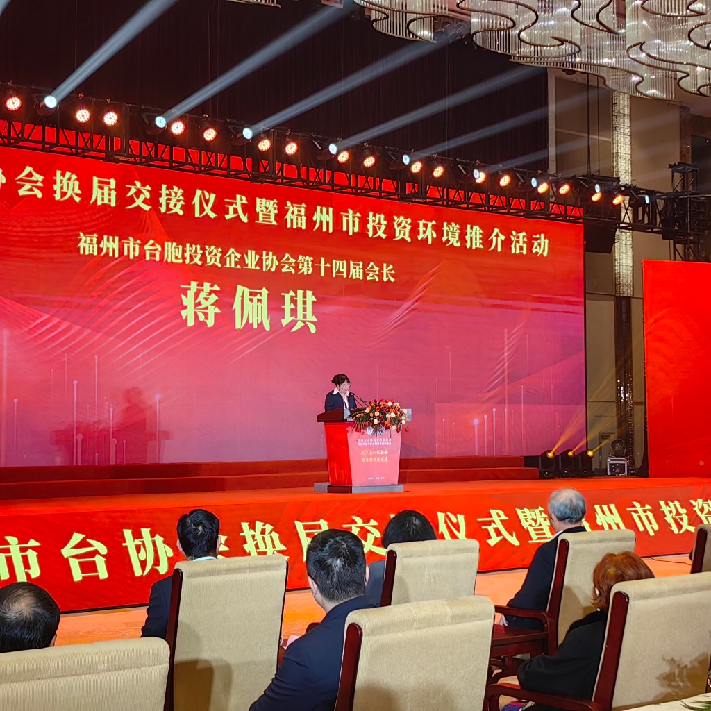 18日舉辦福州台協換屆交接儀式,台商二代蔣佩琪連任第十四屆會長(上圖)。她表示,福州台協成立於1994年,目前有會員702家。近年來,協會積極發揮「引路人」「連心橋」作用,在服務台商台企發展上展現新作為,團結帶領廣大台商,抓住大陸發展機遇實現跨越發展,主動融入福建兩岸融合發展示範區建設。