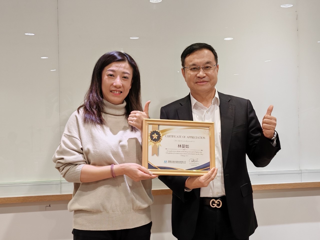 ↑陞醫生技董事長謝儒生授予培訓老師感謝證書
