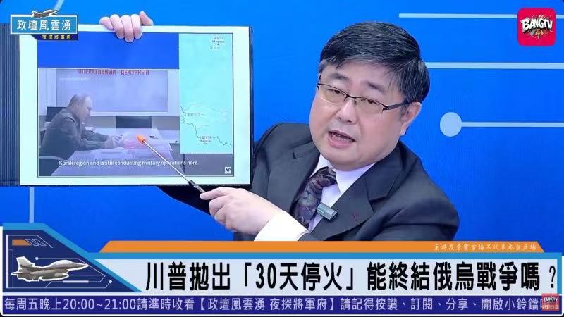 呂禮詩分析,3月12日普丁到占領區庫斯克,是要在停火退兵做路線的預備,如烏克蘭使用海力斯、爆風飛彈,俄軍是否能由庫斯克返回莫斯科,防止停戰後的突擊。對於烏克蘭所求換回庫斯克是一廂情願,絕無法實現。張將軍補充,美俄將烏克蘭分割土地及礦產,債留烏克蘭,這種烏克蘭全面戰敗的慘況,台灣應引以為鏡,