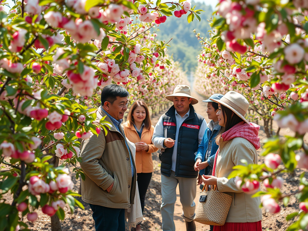 在洛陽市新安縣,考察團一行到五頭鎮櫻桃溝產業示範基地進行實地研究,聽取講解員介紹新安縣透過改良土壤、引育新品種、應用智慧化設施、建保鮮冷庫、電商直播等方式,做大做強櫻桃種植產業,詳細了解新安櫻桃的品種發展歷史、種植技術、培育、產業化營運等情況。在得知新安縣運用現代科技與傳統農業產業結合的形式,開辦了以櫻桃為主題的特色餐廳、創意美食,以及農耕文化研發、櫻桃詩詞大會等活動時,考察團一行紛紛讚歎不已。