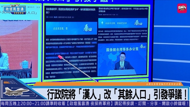 張將軍說行政院將「漢人」改「其餘人口」引發爭議!