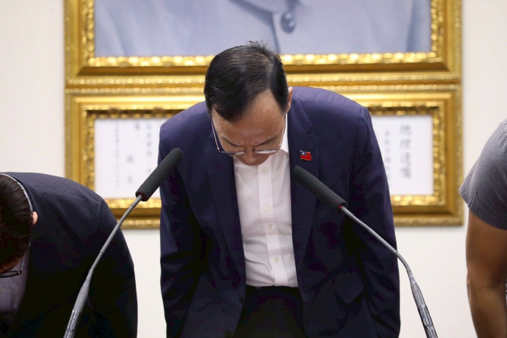 上圖:國民黨主席朱立倫為大罷免完勝向民眾鞠躬致謝。存檔照 文傳會提供