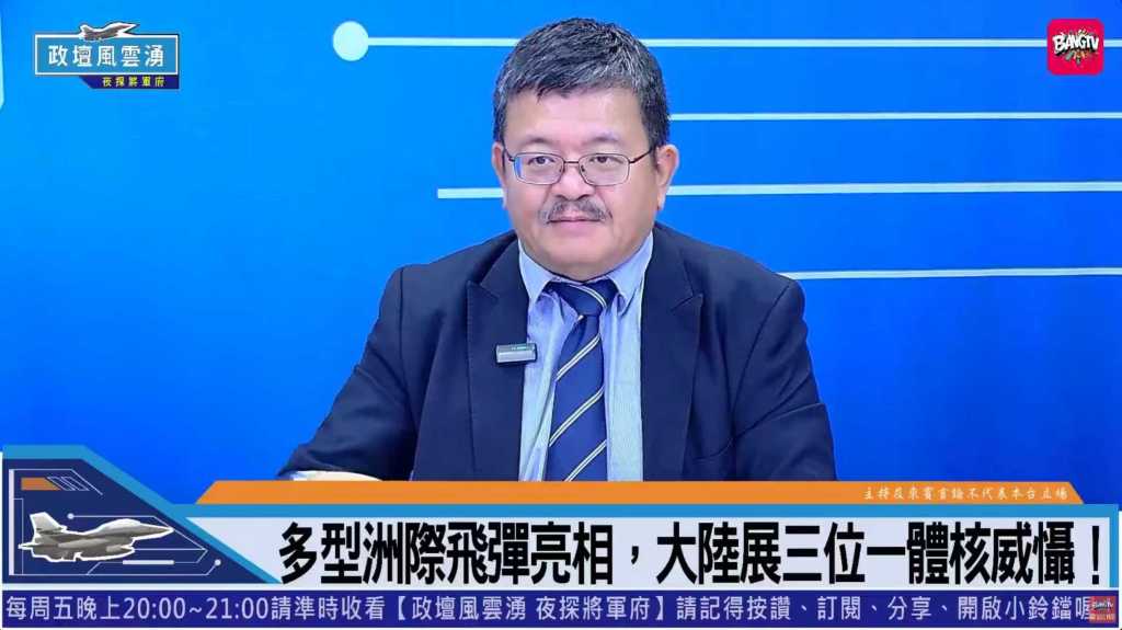 來賓施孝瑋表示, 攻擊性的核武「三位一體」核戰略公開亮相,大陸已深深學習,核擊東風21、26及鷹擊18,將10顆彈頭以隨機路線,分頭前進同時命中目的地,讓防守方頭痛難防禦。