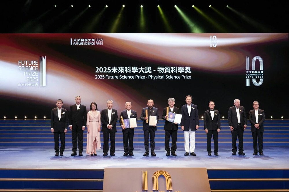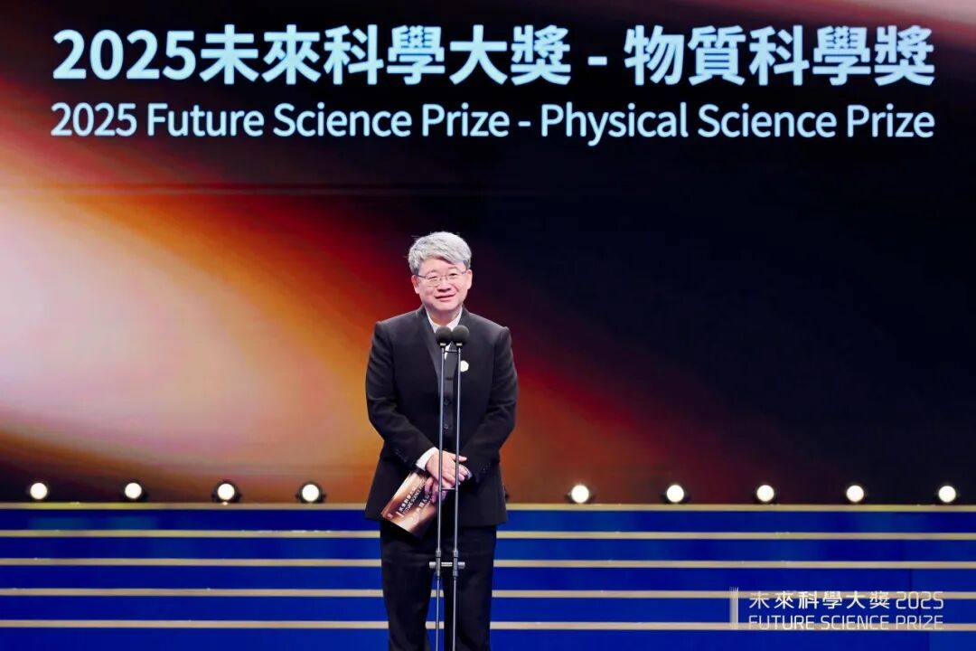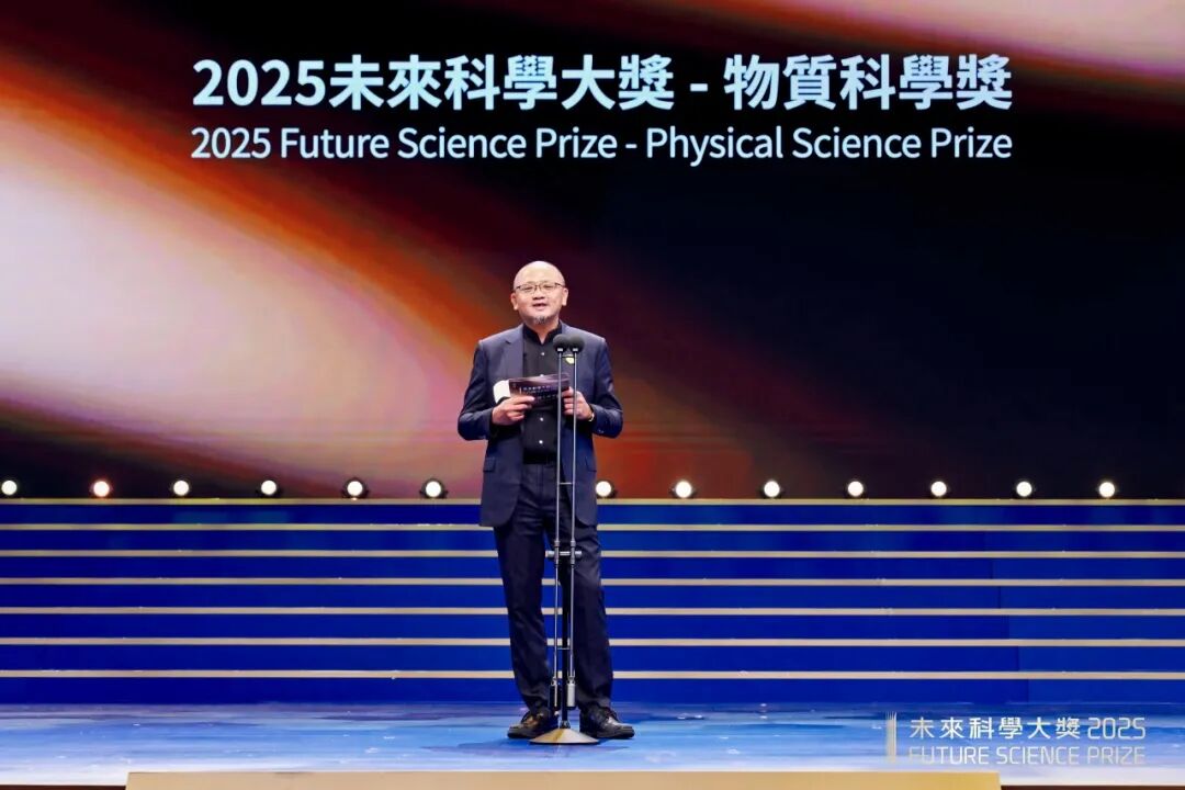 方忠、戴希、丁洪因在拓樸電子材料的計算預測及實驗實現方面的卓越貢獻而獲頒2025未來科學大獎-物質科學獎。未來科學大獎科學委員會委員夏幼南教授宣讀了獲獎理由,並與鄧力、陳諧、崔屹、林潮、翁玉林等科學委員會委員及未來科學大獎捐贈人鄧鋒、劉芹共同為獲獎者頒發獎杯和證書。