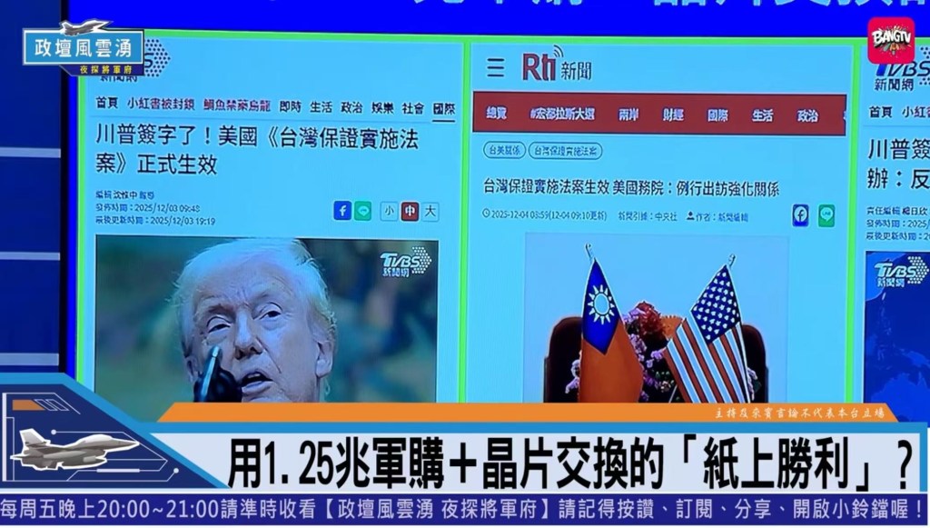 主持人張延廷將軍第四題提問,用1.25兆軍購+晶片交換的「紙上勝利」?