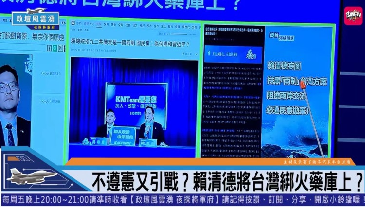 主持人張延廷將軍提問第一題,不遵憲又引戰?賴清德將台灣綁火藥庫上?陸官媒看台海「海峽時評」以賴清德妄想抹黑「兩制」台灣方案。蔡英文立院超半、現在賴清德喊台獨不修憲、玩憲法邊緣球,卻又用「紅線、備戰」威逼台灣人民,用恐懼換政治利益?面對國台辦強硬警告與台海升溫,卻仍用挑釁當政績,究竟誰在把台灣繫在火藥庫上?不是台灣要戰,而是有人把戰端當提款機。