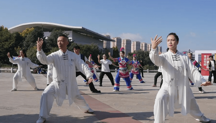 以拳會友,共展太極與樂作舞風采 兩岸師生分別在學校有鳴潭廣場、國門青年友誼廣場、圖書館習練太極拳與國家非物質文化遺產、雲南紅河傳統民間舞蹈——樂作舞,現場氣氛熱烈,兩岸師生相互學習、相互交流,在舞蹈與拳法的交融中,感受著中華傳統文化的博大精深。