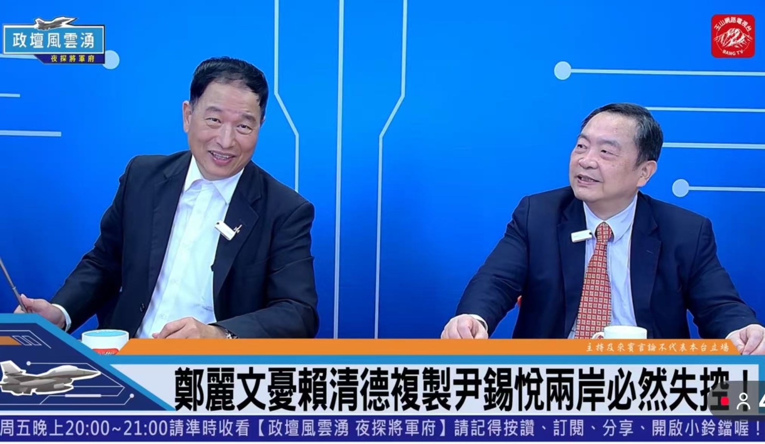 《政壇風雲湧 夜探將軍府》昨(16)晚張延廷將軍坐鎮主持【玉山新聞雲 Bang TV】直播節目第80集,邀請國立政治大學外交系教授劉德海同台開砲,從兩岸安全角度鄭麗文憂賴清德複製尹錫悅路兩岸必然失控,民進黨的執政團隊應該多與在野黨溝通,讓台灣能安全脫離大陸安全威脅及川普掏空台灣的雙重危機。