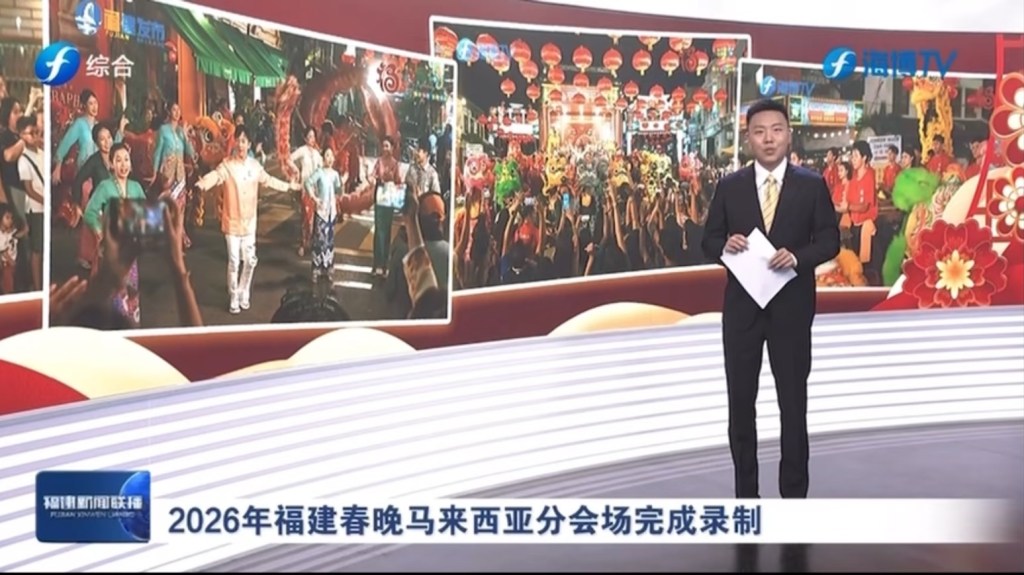 福建省春節聯歡晚會已連辦多年,此次馬來西亞分會場是海外首個錄製點,彰顯「一帶一路」框架下文化交流新成果。節目將於農曆除夕晚透過福建衛視及馬來西亞Astro平台播出,助力海外華僑共度團圓佳節。(圖 擷取海博TV)