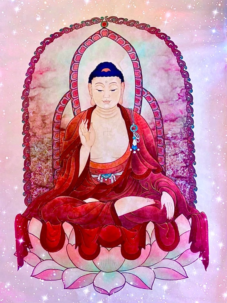 圖說:農曆12月8日是「釋迦牟尼佛」成道日,素人畫家張美芳(Joanna)分享釋迦牟尼佛相及AI作品祝禱。