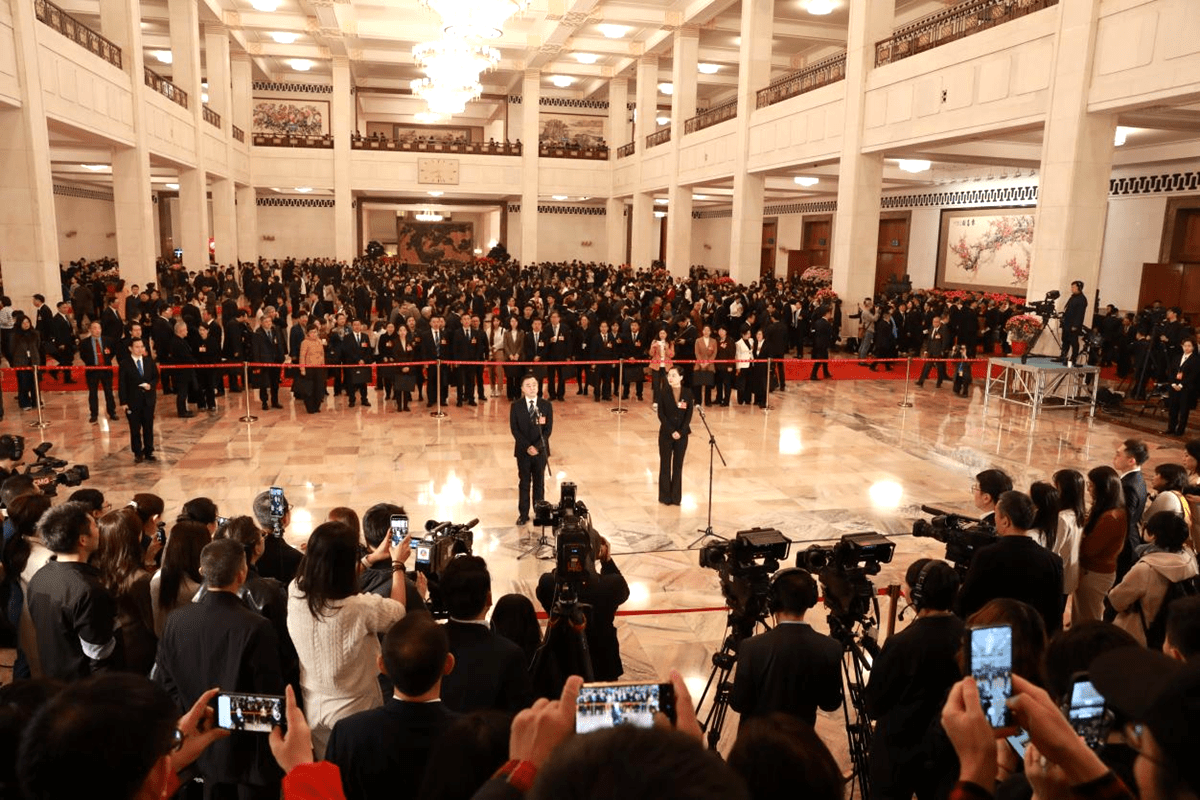 上圖:3月9日,十四屆全國人大四次會議第二場「代表通道」集中訪談活動在人民大會堂中央大廳北側舉行。 (中國台灣網記者李寧攝)