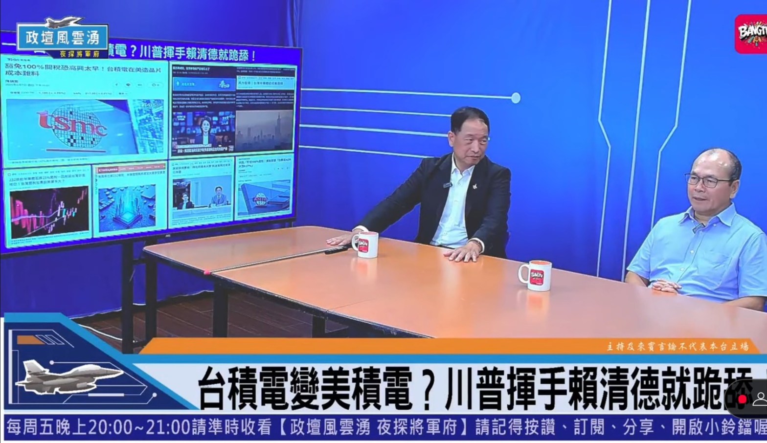 ↑美國再度工業化 踩著台灣人的頭站起來 記者羅玟宜整理報導 《政壇風雲湧 夜探將軍府》今(15)晚播出第58集繼續閱讀 “美關稅談判美國淘空台灣的四十年血汗台積電"