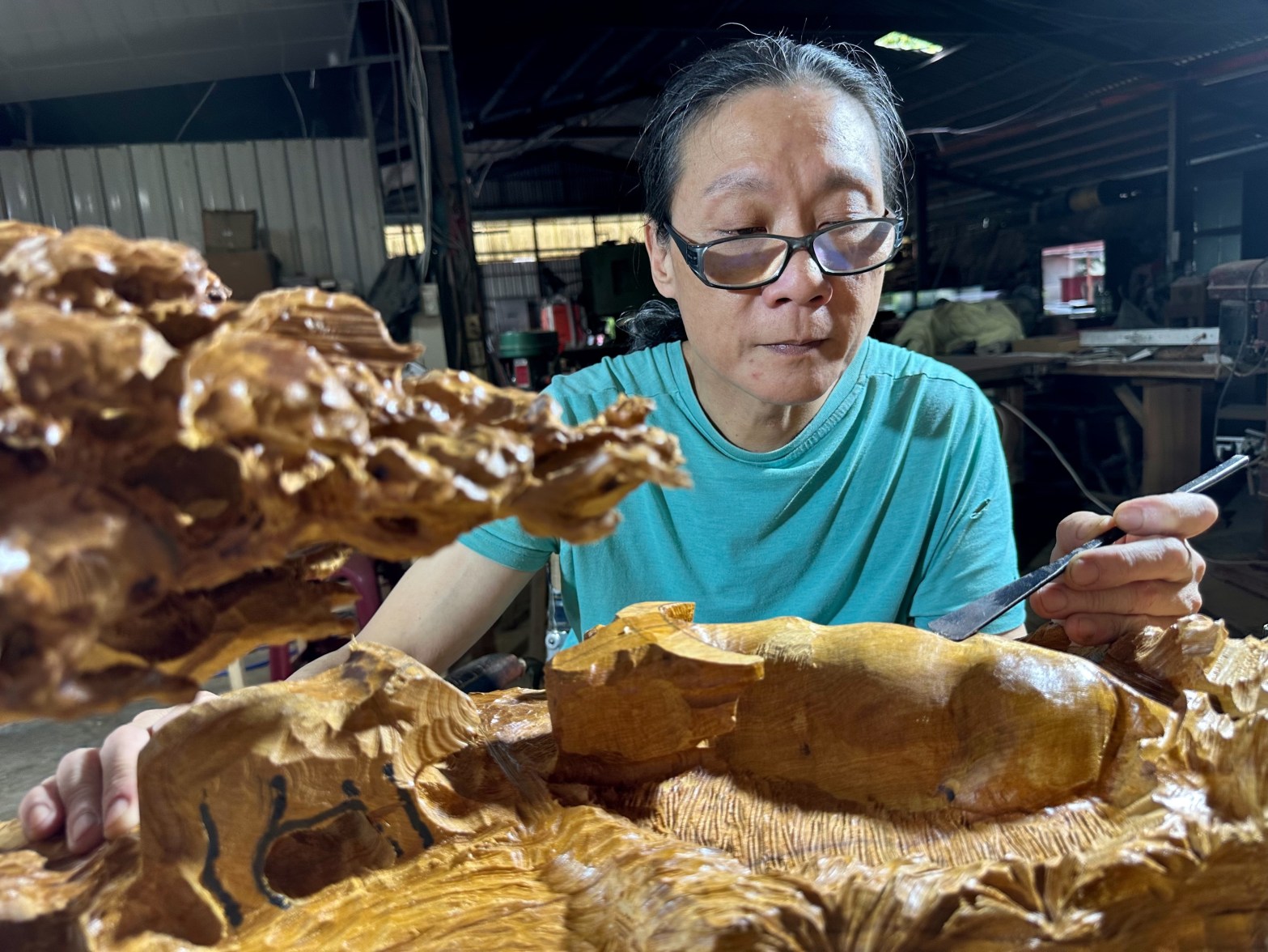 上圖:台灣著名木雕家林正發新作「母子情深」! 記者陳玉柱台北報導 出生1968年的林正發自小喜愛美學,初中畢業繼續閱讀 “台灣著名木雕家林正發新作「母子情深」"