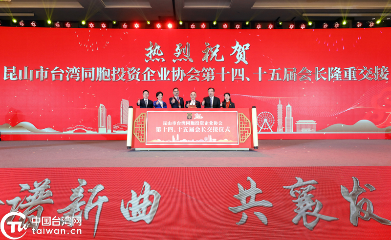 昆山市臺協會第十五屆會長孫德聰從第十四屆會長宗緒惠手中接過接力棒