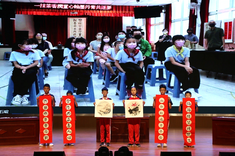 聊城市高唐縣新北市石碇小學的師生們以視頻直播展示茶藝與書法,傳承中華優秀傳統文