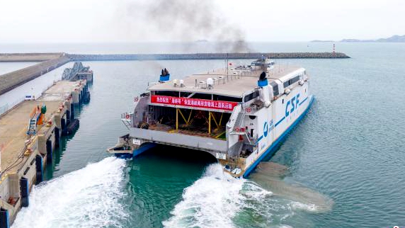 平潭澳前客運滾裝碼頭,載運快件的高速客滾船“海峽號”再次響起汽笛