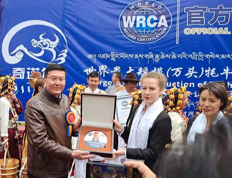 世界最大規模(萬頭)氂牛奶現製酥油活動獲WRCA世界紀錄認證